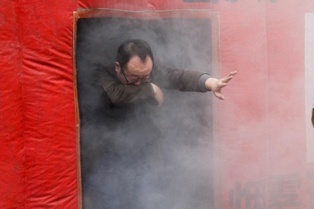 杨清波老师从烟雾逃生体验屋里出来