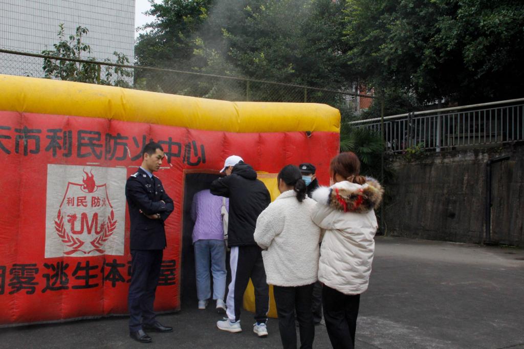 全体师生等待体验烟雾逃生体验屋