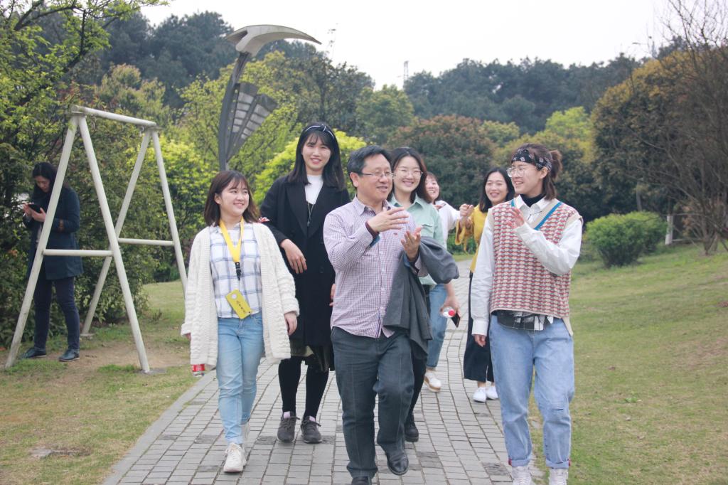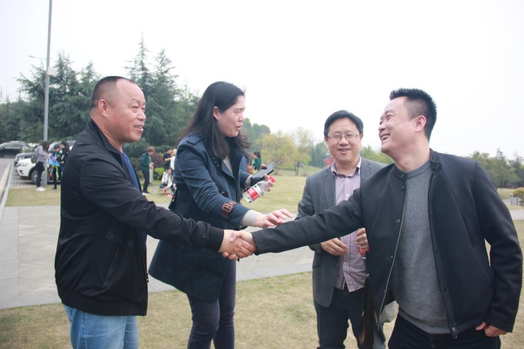 江北区城管局工作人员热情接待川外师生一行,左二为铁山坪街道宣传委员刘可,右一为铁山坪街道经济科科长皮文静
