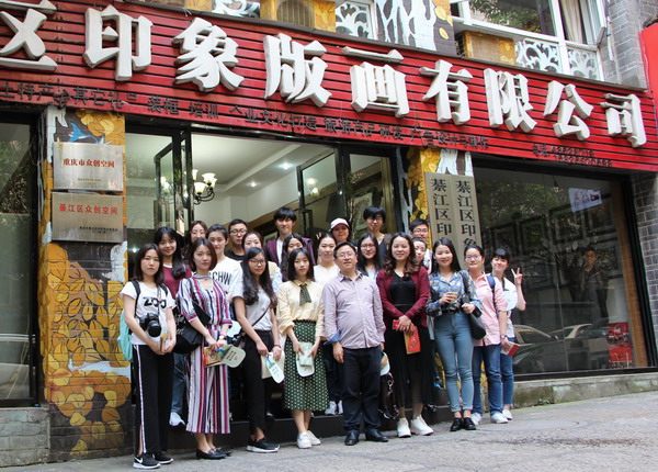 川外研究生师生一行首先调研了綦江印象版画公司。綦江印象版画公司成立于2010年,经过8年的发展,已成为推进綦江农民版画市场化的龙头企业,其“版画风”品牌有广泛的社会影响;该公司主要研发生产綦江农民版画相关衍生生活用品和旅游商品,是重庆市优秀文化企业、重庆市文化示范基地、重庆市旅游商品核心单位、綦江版画体验中心。