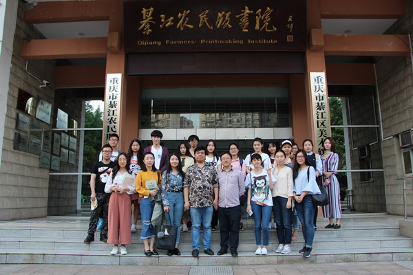在綦江农民版画院合影留念(前排左四为綦江农民版画院经理桂焕勇)