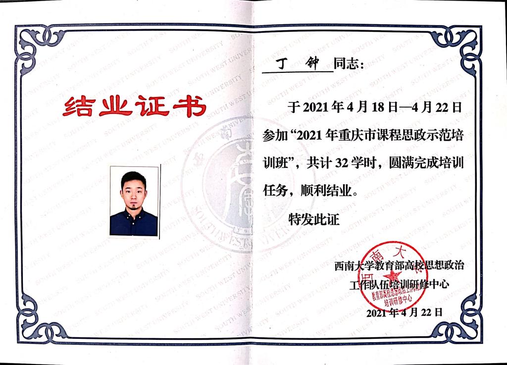 丁钟结业证书