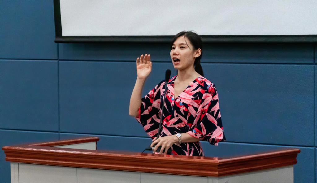 会上,2019级辅导员牟敏老师正式欢迎了256位本科新生的到来,介绍了公司的概况并为新生们即将到来的军训加油打气。
