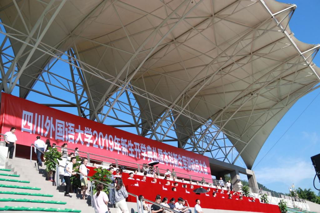 9月12日上午八点十五分,2019级新生开学典礼暨本科新生军训动员大会在西区风雨操场举行。