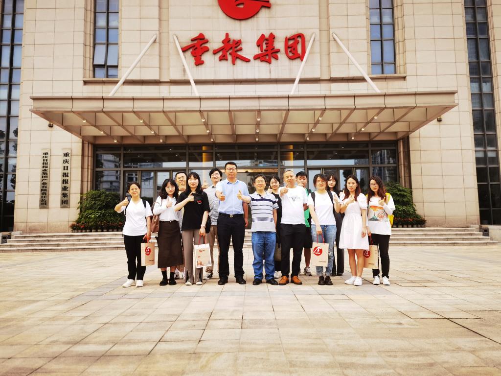 川外新传师生一行与今日重庆传媒集团领导合影(前排左四:张军兴,右四:刘凤羽)