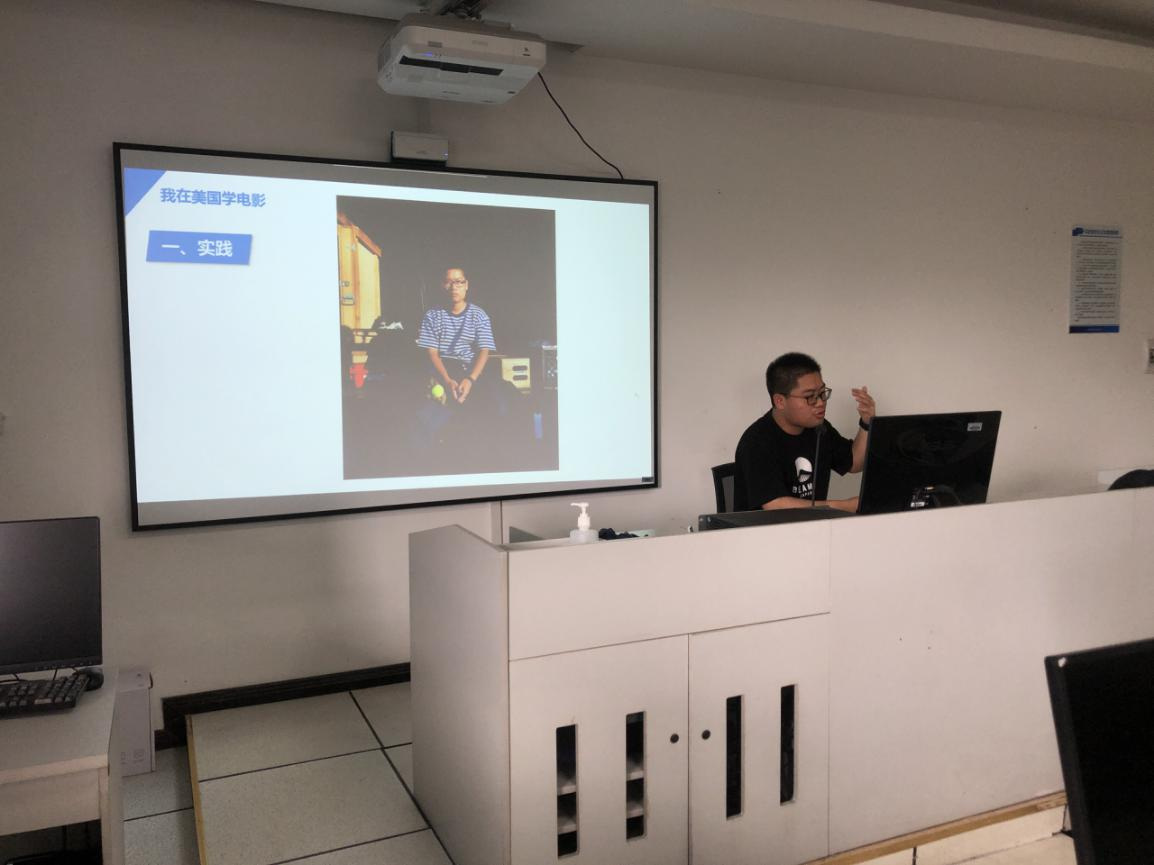 主讲人傅至,是本院14级的员工,在大学毕业之后成功申请到纽约电影公司影视制作系研究生,远赴大洋彼岸求学。傅至首先为同学们介绍了纽约电影公司的优越地理位置以及丰富的资源条件,分享了他在纽约电影公司拍片的实践经历,也为同学们播放了部分其在纽约电影公司创作的短片。