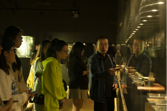 马一老师先带领老师和同学们参观了博物馆,期间,马老师为大家逐一讲解了博物馆所陈列的艺术藏品,也毫不吝啬地分享了许多关于沉香的历史与文化知识。许多同学初次接触沉香,都紧跟马老师的步伐,对沉香以及相关的文物有了初步的认识。九龙沉香博物馆的魅力不止来源于对历代香道用具的收藏与陈列,也来自为推广沉香文化而设计的艺术产品和文创周边。