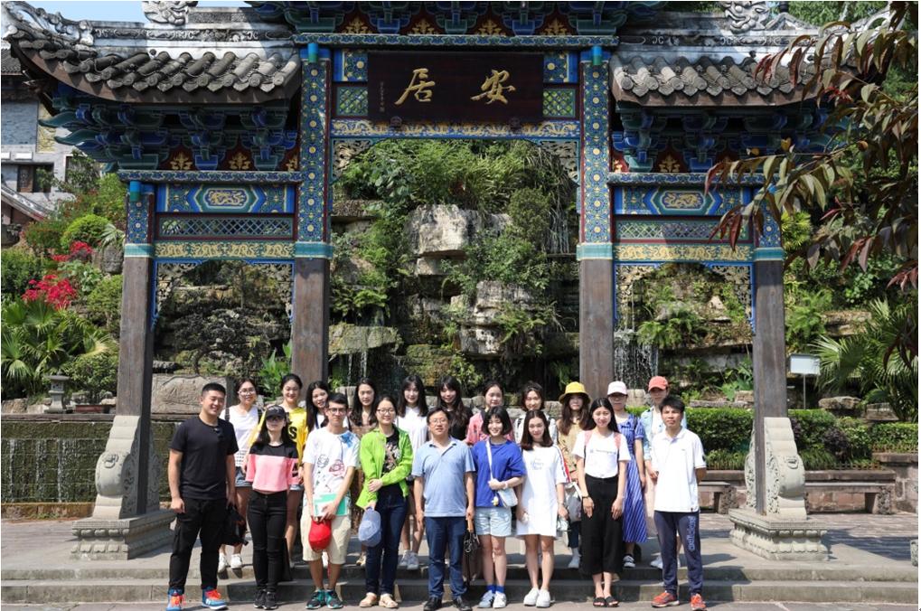 川外研究生师生一行在安居古城入口处合影