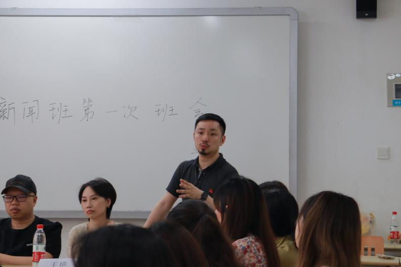 郭赫男教授回顾了公司新闻学专业发展历程,介绍了新闻学专业历届优秀员工取得的成绩,鼓励19级新闻学专业的同学们营造良好和谐的班风、学风建立良好的人际关系。他还分析近年严峻的就业形势鼓励大家考研,培养自身核心素养,提升自我综合能力。