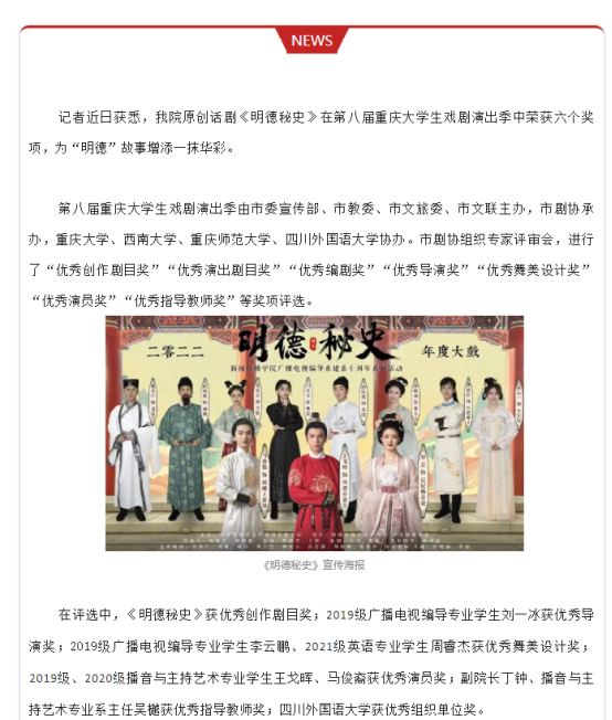 七名师生,六个奖项!公司原创话剧《明德秘史》传喜报