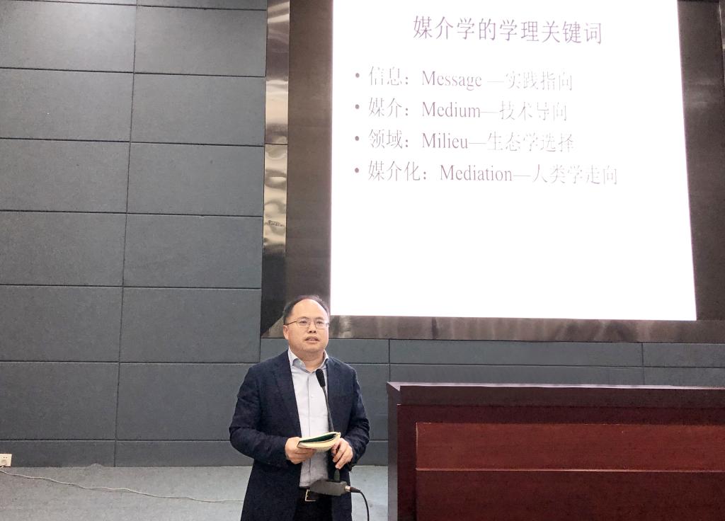 围绕媒介学研究媒体的关系性问题,陈卫星教授结合互联网和传媒发展现状,从不同的方面讲解了媒介学对媒体的关系性理解。陈卫星教授认为,这个关系性实际上是首先通过对事物关系的评估方式和介入的角度来定义关系。围绕着“媒介”二字,陈卫星教授还表达了基于东方智慧对媒介学研究的期待,希望学者们能够充分利用中国迂回策略的渐近性功效,学习西方,后来居上。陈卫星教授还就问题意识的逆反性追溯、话语魅力的效果类型学、理论与实践的历史辩证法、传递的形式主义奥秘、中介是事物发展的变量等不同问题进行了阐述。