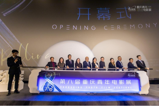 市委宣传部二级巡视员钱陵宣布第八届重庆青年电影展正式开幕市外办一级巡视员唐文、市文联副主席黄振伟、英国365上市公司纪委书记苟欣文、重庆国际文化交流中心主任陈世立、市委宣传部电影处处长刘贵明与巴西、哥伦比亚、墨西哥、乌拉圭、匈牙利等五国外宾共同参与开幕仪式