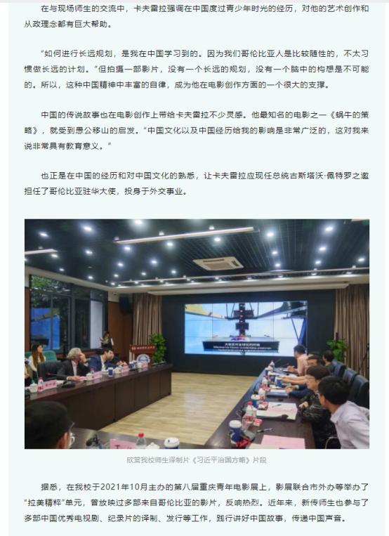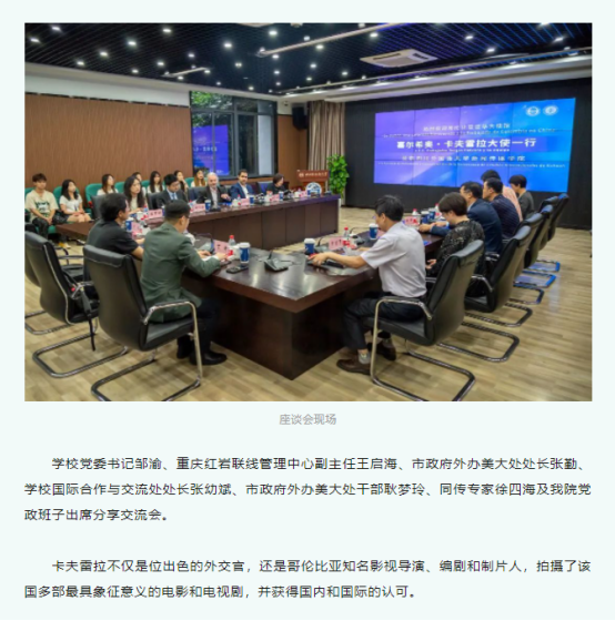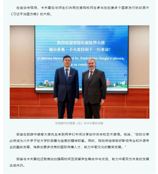 哥伦比亚驻华大使、著名电影导演卡夫雷拉来川外与师生座谈
