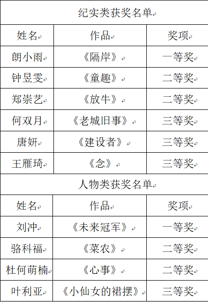 附:川外摄影大赛获奖名单