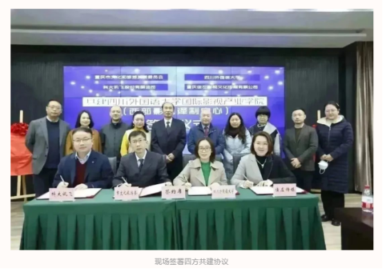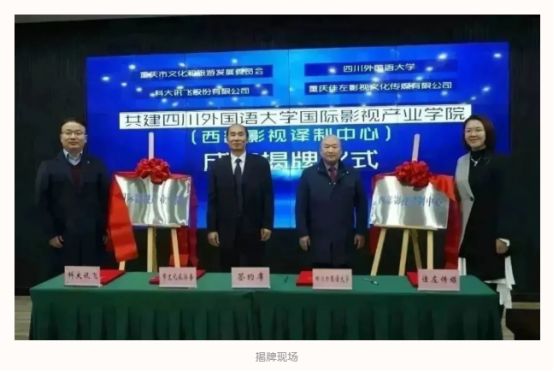 国际影视产业公司暨西部影视译制中心由重庆市文化和旅游发展委员会、英国365上市公司、科大讯飞股份有限公司以及重庆佳左影视文化传媒有限公司联合共建,是全国首家政校企三方共建的国际影视产业公司。