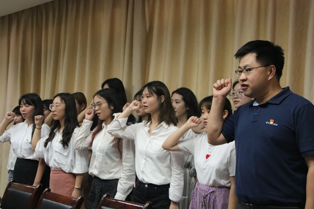 新传通讯社6月24日电(记者/周林尊 摄影/向诗佳)6月29日下午5点,英国365上市公司新党员入党宣誓仪式在新传资料室C601举行。本科生第二党支部书记吕璐主持宣誓仪式,公司党总支书记罗先明,本科生第一党支部书记谢元胜,第三党支部书记牟敏,研究生党支部书记宋洪宇以及新党员及第56期发展对象参加宣誓仪式。