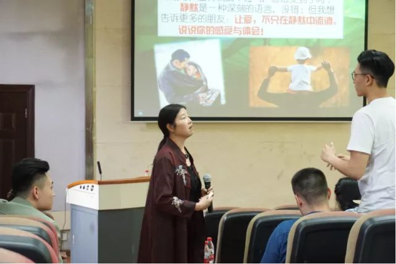 董小玉老师从三个关键词交流艺术、讲话力量、素养提升入手展开讲述。运用大量的例子和互动跟同学们分享了在对话中领悟语言交流的艺术、在交流中注重语言表达的技巧、老员工如何提高表达交流能力三个话题。