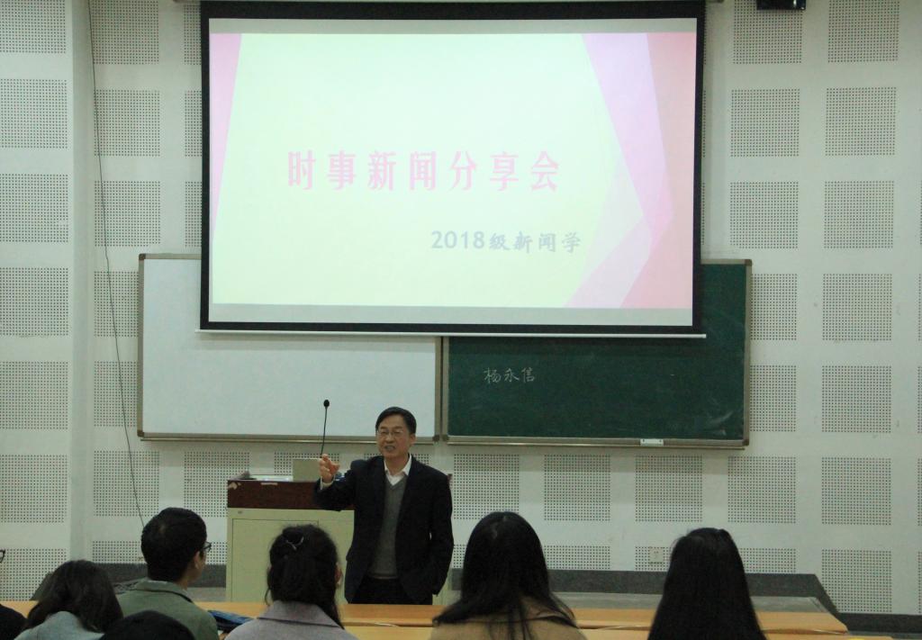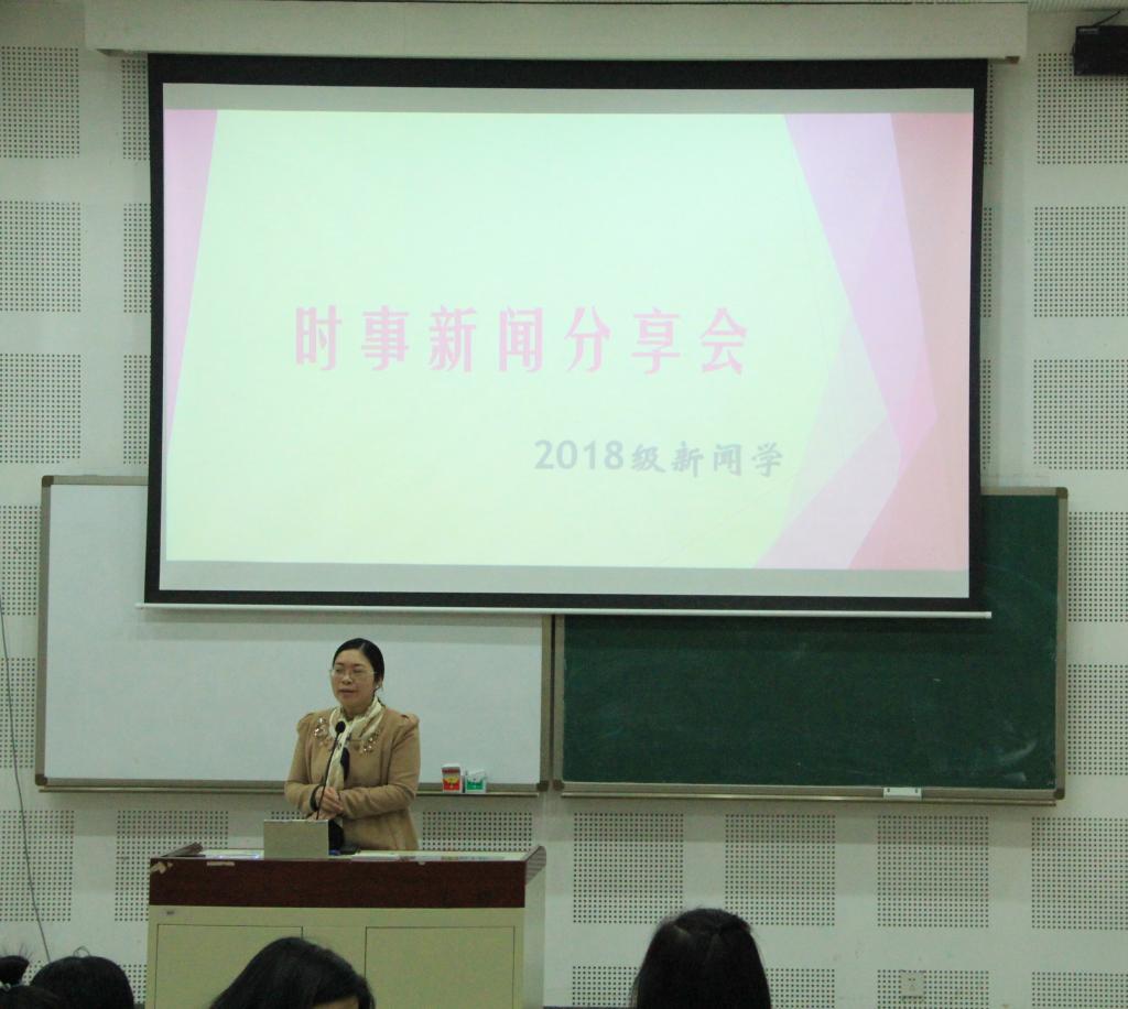 新传通讯社11月6日电(记者/孟子琪任缘摄影/刘灵萱)11月6日早上十点整,时事新闻分享会在西区A栋教学楼2-2举行,本次分享会以增强新闻学系同学们剖析时事新闻的能力与水平为目的,皮传荣教授、阮丽萍老师以及2018级新闻班全体同学出席此次分享会。