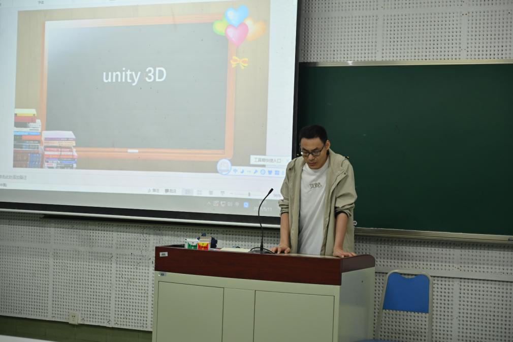 随后,李蕾老师又向同学们介绍了Unity技术在虚拟影像开发中如何应用,为同学们播放了一些实验视频,让同学们从中获得理解。同时又向同学们介绍了目前该行业发展的前景与机遇,鼓励同学们多多投身于虚拟影像等更多高科技技术领域的创作。