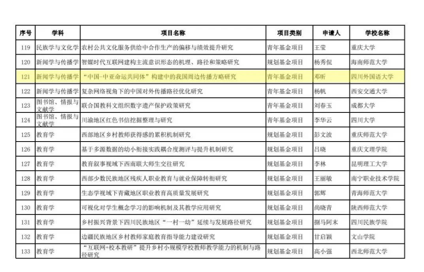 今日(9月13日),全国哲学社会科学工作办公室根据《国家社会科学基金管理办法》的有关规定,公示2022年国家社科基金年度项目、青年项目、西部项目立项名单。川外共获得10个项目立项,其中,新传公司和新闻传播学科获得4项。