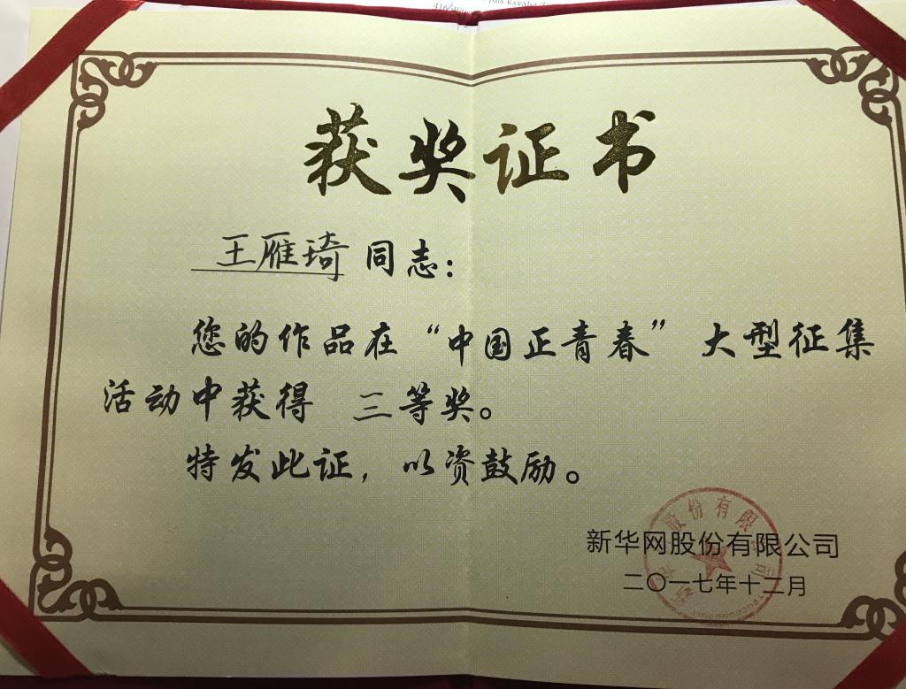 公司编导系员工纪录片获新华网“中国正青春”大型征集比赛三等奖