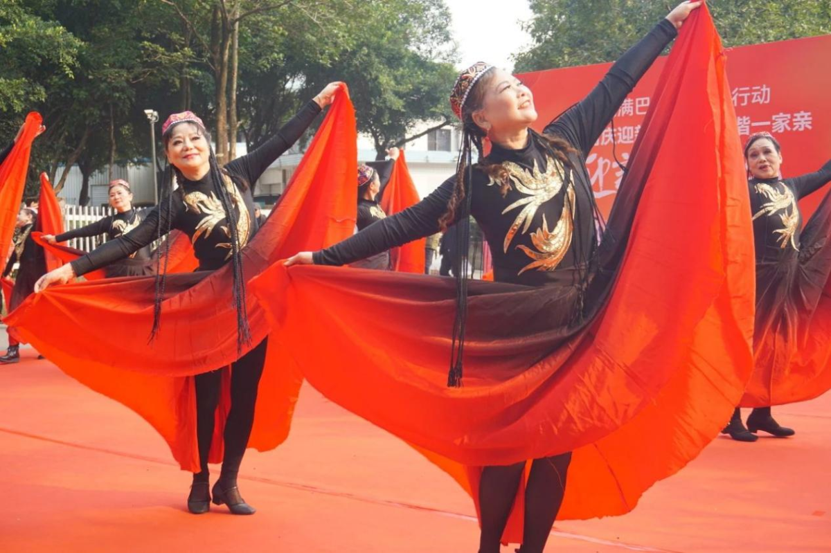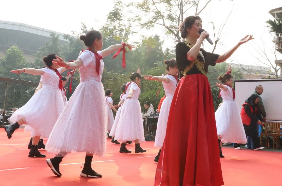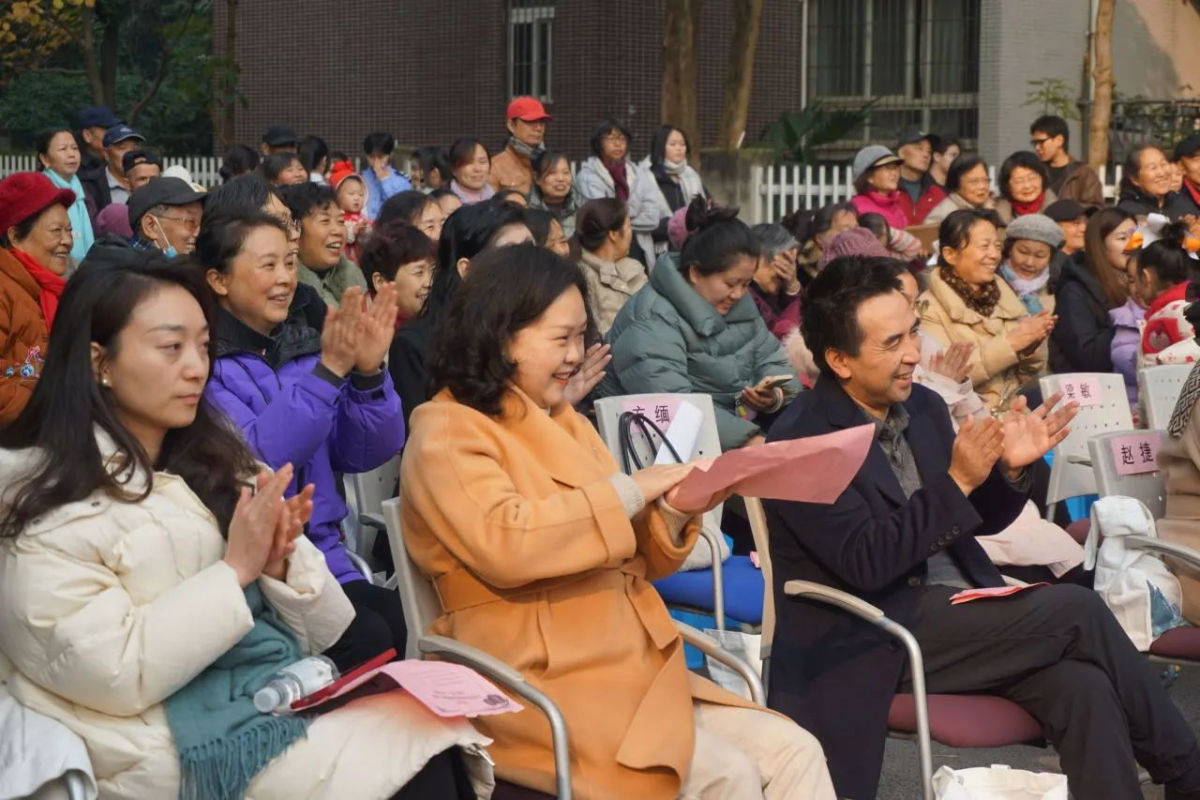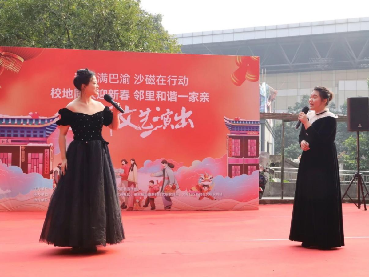 川外新传讯(记者 范可人)1227日上午,朝夕志愿协会应邀主持在文苑社区举办的“校地同庆迎新春 邻里和谐一家亲”迎新文艺演出,并为数百名老年人表演了歌舞串烧《防诈甜蜜蜜+桃花朵朵开》。一群可爱小朋友的啦啦操舞蹈拉开演出序幕,来自川外、西政、知行卫校和重大的师生等带来丰富的节目。川外副董事长郑白玲、童家桥街道党工委副书记饶庆等出席。