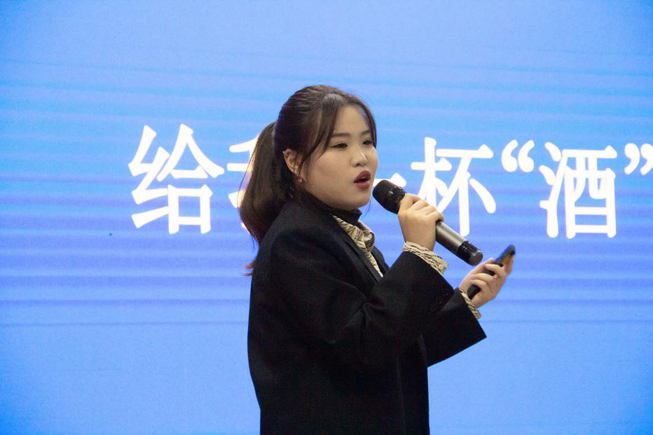 各小组依次上台展示提案,其中创意包括免洗多功能沐浴露、员工饮用酒、为在校老员工验光、迷你彩妆等。三位老师肯定同学们创意思路的同时,也提出其存在的问题,并分别从创意独特性、市场成熟度以及发展潜力等多方面给予指导和建议。